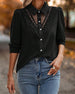Blouse Profond Col En V Manche Bouffante Imprimée
