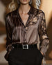 Chemisier tendance à revers en dentelle et manches longues