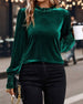 Blouse Profond Col En V Manche Bouffante Imprimée