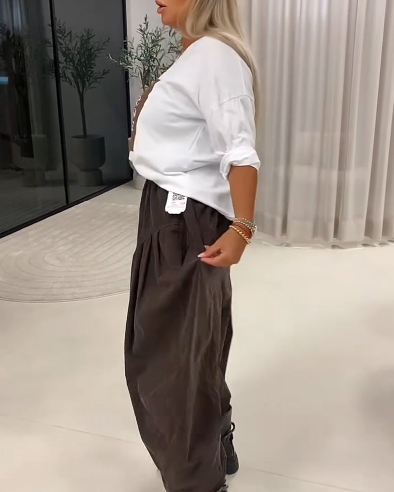 Haut Tendance À Col V Couleur Contrastée