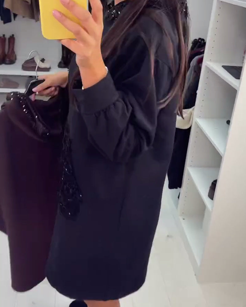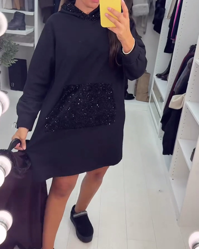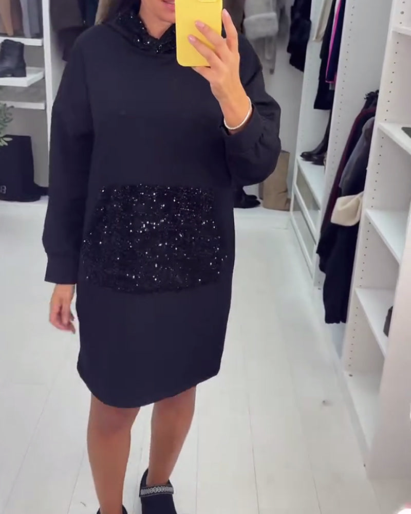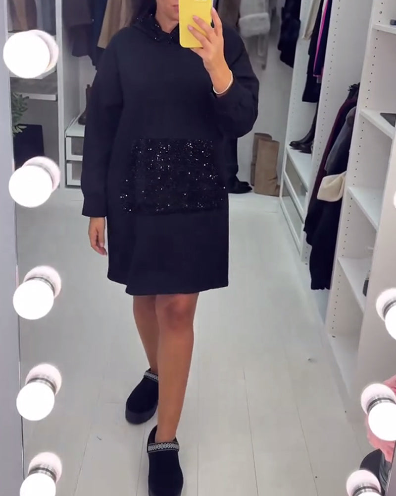 NOUV Icon1 Robe À Capuche Pailletée Patchwork Sweat-Shirt