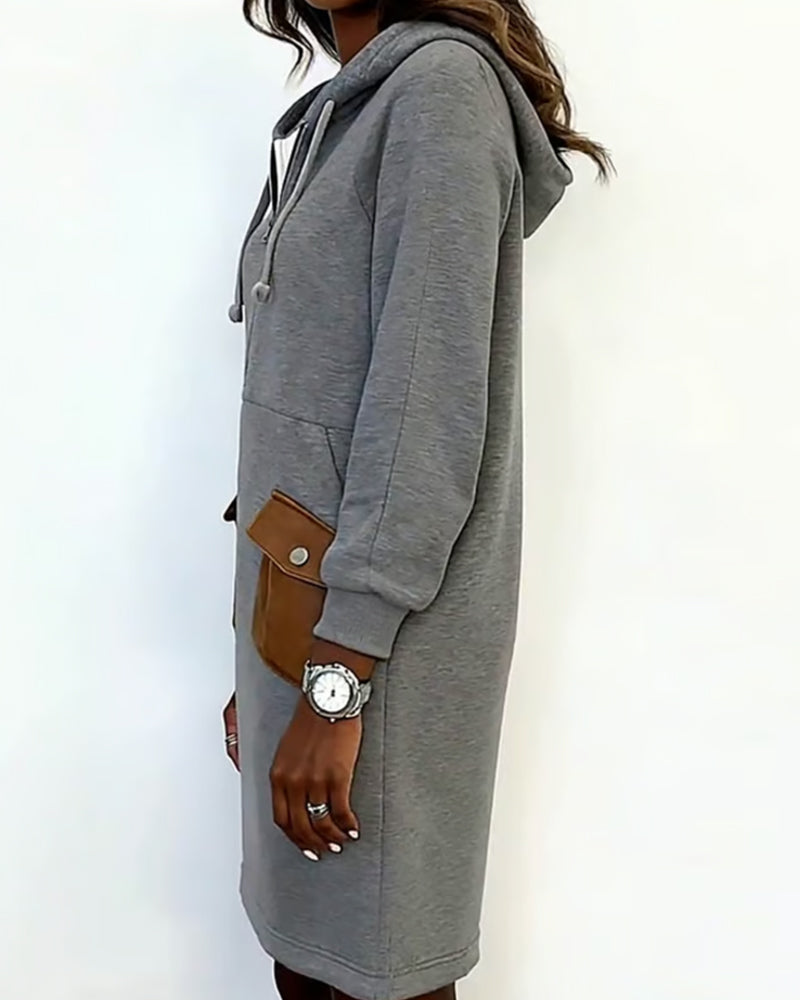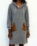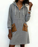 Robe décontractée à capuche avec fermeture éclair et poches patchwork