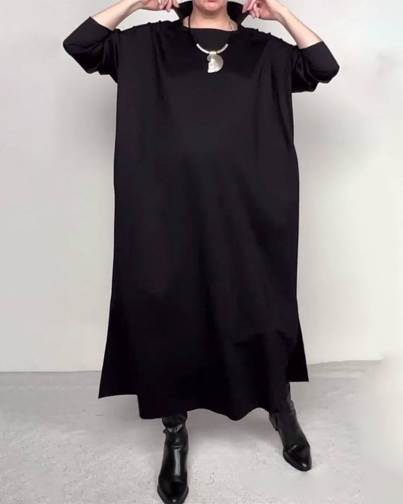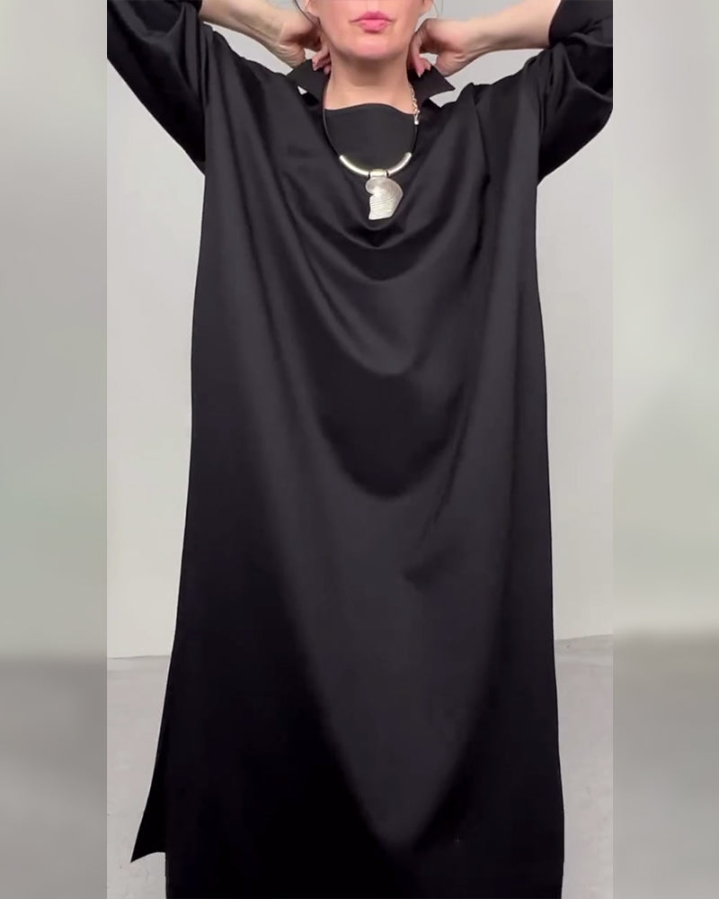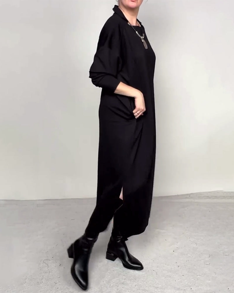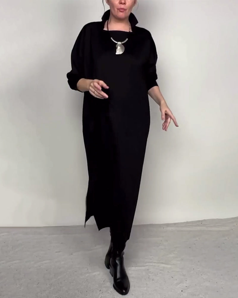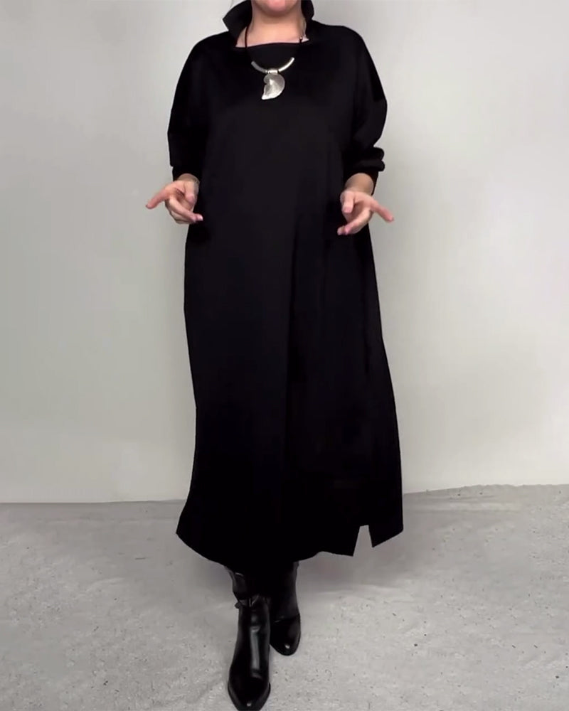 SPÉCIFICATIONS Style: Décontracté Matériel: Mélange de coton Longueur de la robe: Maxi Forme du col: Col roulé Type du dessin: Couleur pure Type de la manche: Manches régulières Longueur de la manche: Manches 3/4 Détails: Boutons,Fente Type d'ajustement: Ample Saison: Automne,Hiver Occasion: Quotidien Contenu du colis: 1 x Robe TABLEAU DES TAI...