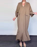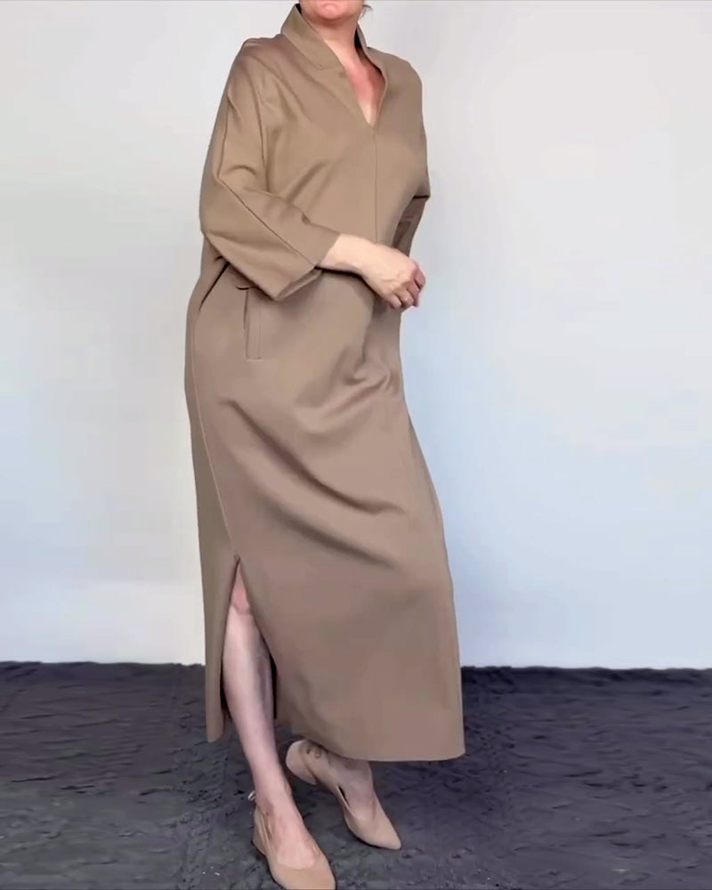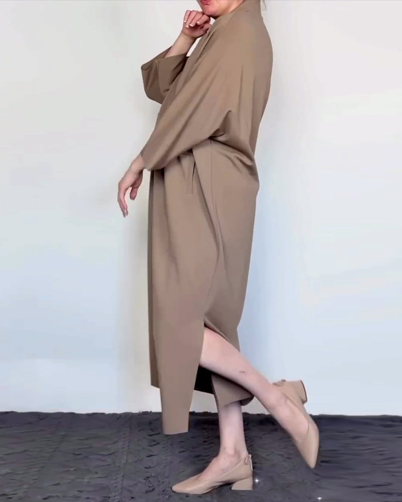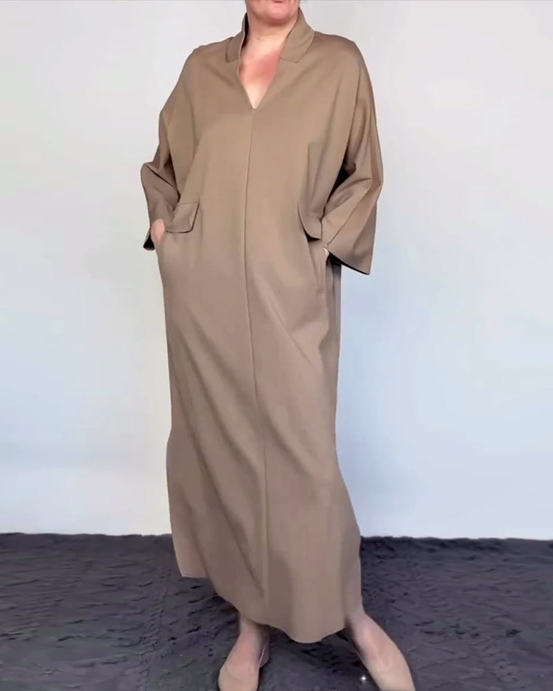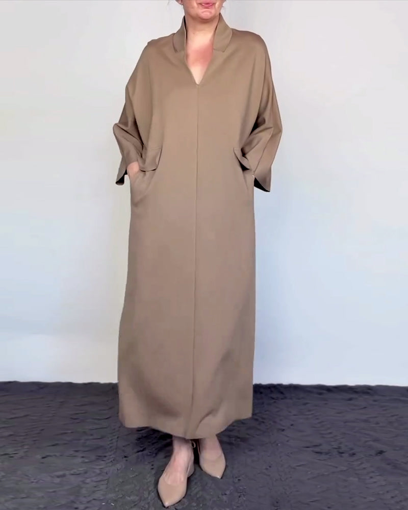 SPÉCIFICATIONS Style: Décontracté Matériel: Mélange de coton Type de la robe: Robe jambe droite Longueur de la robe: Maxi Forme du col: Col à revers Type du dessin: Couleur pure Type de la manche: Manche chauve-souris Longueur de la manche: Manches 3/4 Type d'ajustement: Ample Saison: Automne,Hiver Occasion: Quotidien Contenu du colis: 1 x Rob...