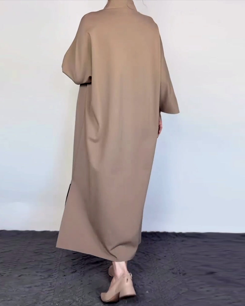 SPÉCIFICATIONS Style: Décontracté Matériel: Mélange de coton Longueur de la robe: Maxi Forme du col: Col roulé Type du dessin: Couleur pure Type de la manche: Manches régulières Longueur de la manche: Manches 3/4 Détails: Boutons,Fente Type d'ajustement: Ample Saison: Automne,Hiver Occasion: Quotidien Contenu du colis: 1 x Robe TABLEAU DES TAI...