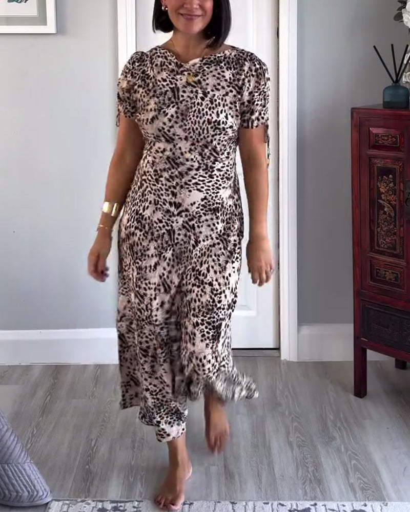 NOUV Icon1 Robe Avec Motif Léopard Et Design De Manches Courtes