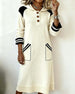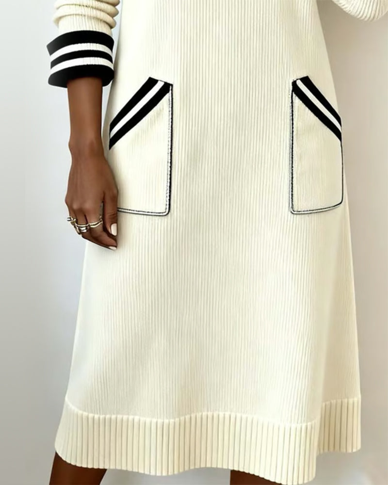 SPÉCIFICATIONS Style: Décontracté Matériel: Jean,Tricotage Type de la robe: Robe jambe droite Longueur de la robe: Midi Forme du col: Col en V Type du dessin: Rayure Type de la manche: Manches raglan Longueur de la manche: Manches longues Détails: Couture de matériau,Poche Type d'ajustement: Habituel Saison: Automne,Hiver Occasion: Quotidien C...