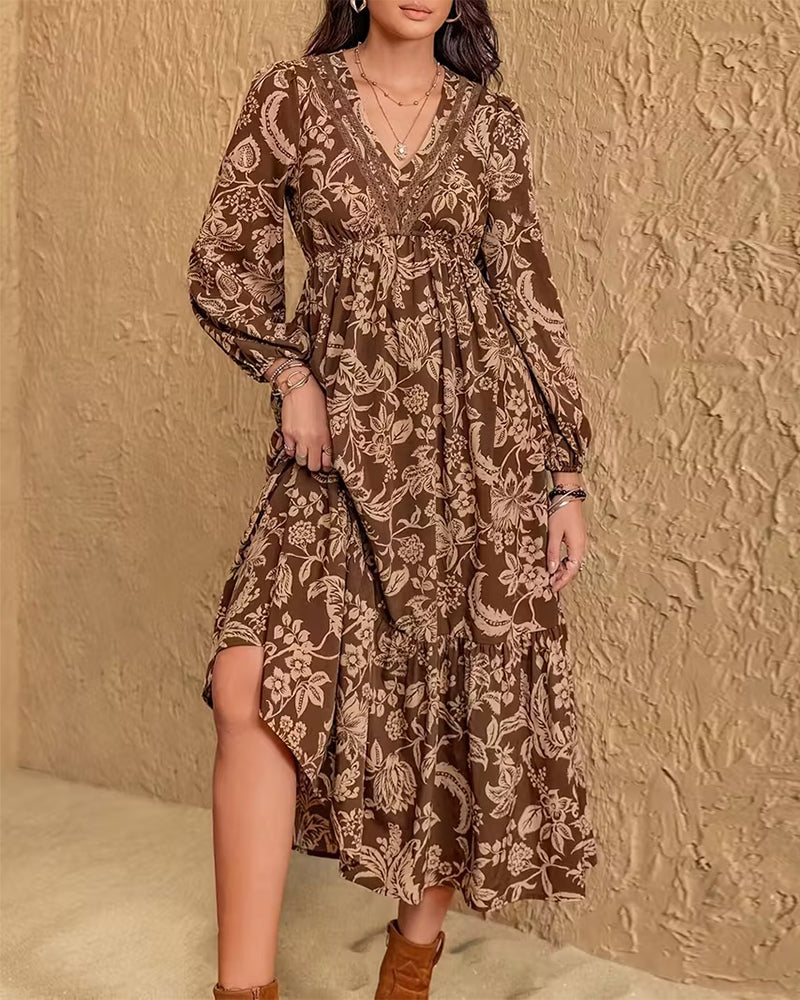 NOUV Icon1 Robe Col En V Stylisé Rétro Imprimé