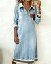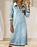 NOUV Icon1 Robe Col Revers Droite En Denim À Panneaux