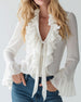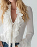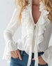 Blouse Froncée Volant Encolure V Manches Longues