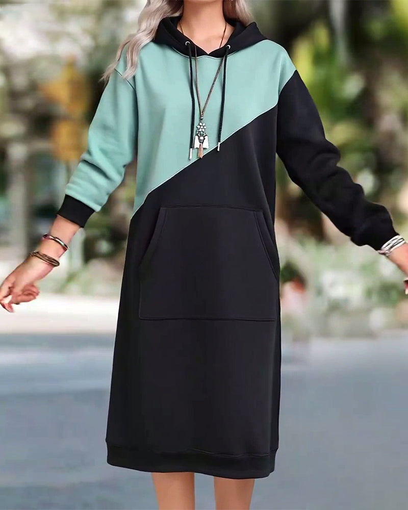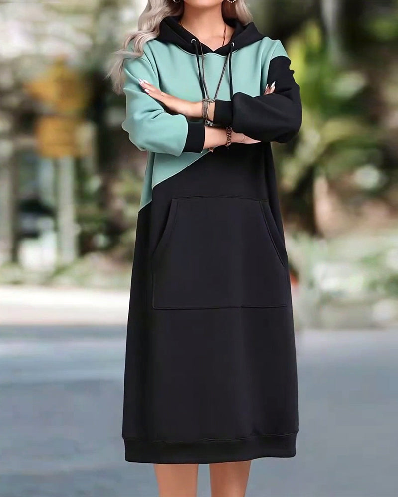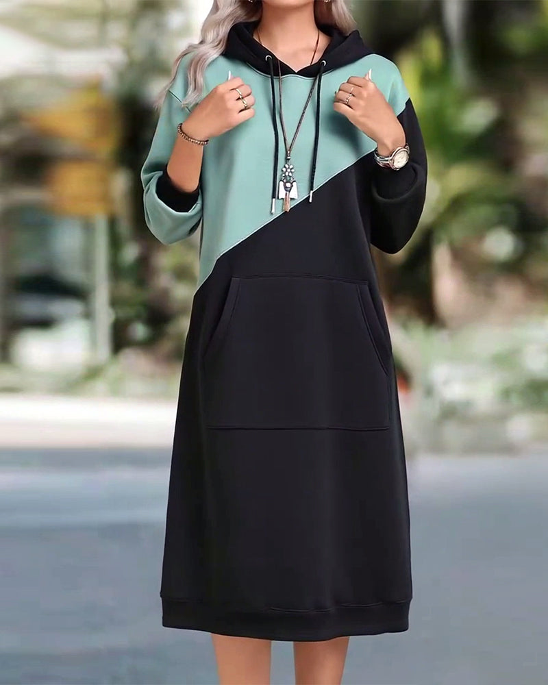 Robe Avec Poches, Design En Blocs De Couleur Et Capuche