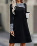 Robe Col Rond Pied-De-Poule Color-Block