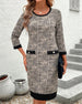 Robe Col Rond Pied-De-Poule Color-Block