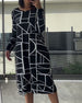 NOUV Icon1 Robe décontractée imprimée à manches longues et col ras du cou