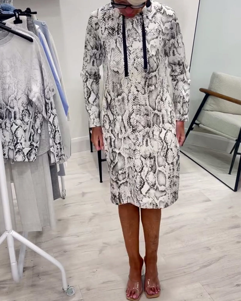 NOUV Icon1 Robe Imprimé Serpent Col Rond Cordon Droit