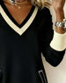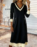 NOUV Icon1 Robe Manches Longues Col En V Contrasté Tricot