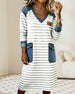 SPÉCIFICATIONS Style: Décontracté Matériel: Mélange de coton Type de la robe: Robe jambe droite Longueur de la robe: Longueur du genou Forme du col: Col en V Type du dessin: Motifs géométriques Type de la manche: Manches régulières Longueur de la manche: Manches longues Détails: Poche Saison: Automne,Hiver Occasion: Quotidien Contenu du colis:...