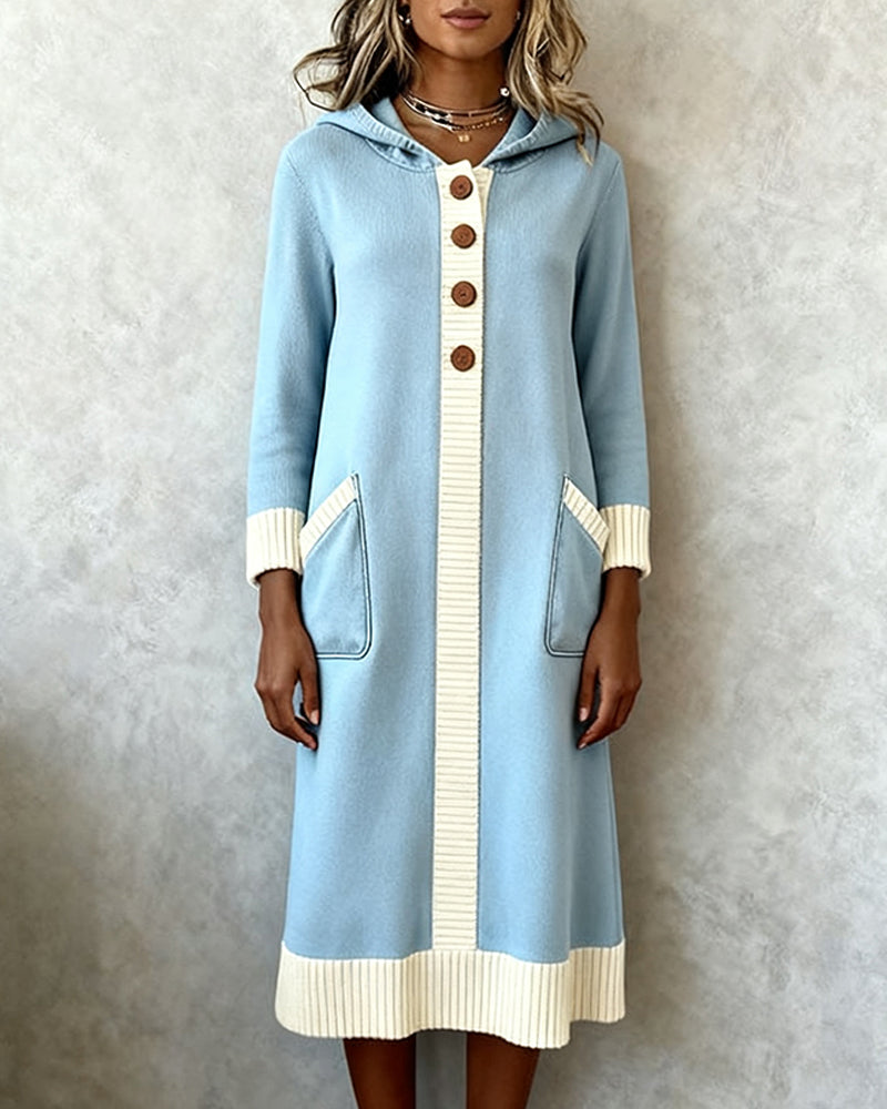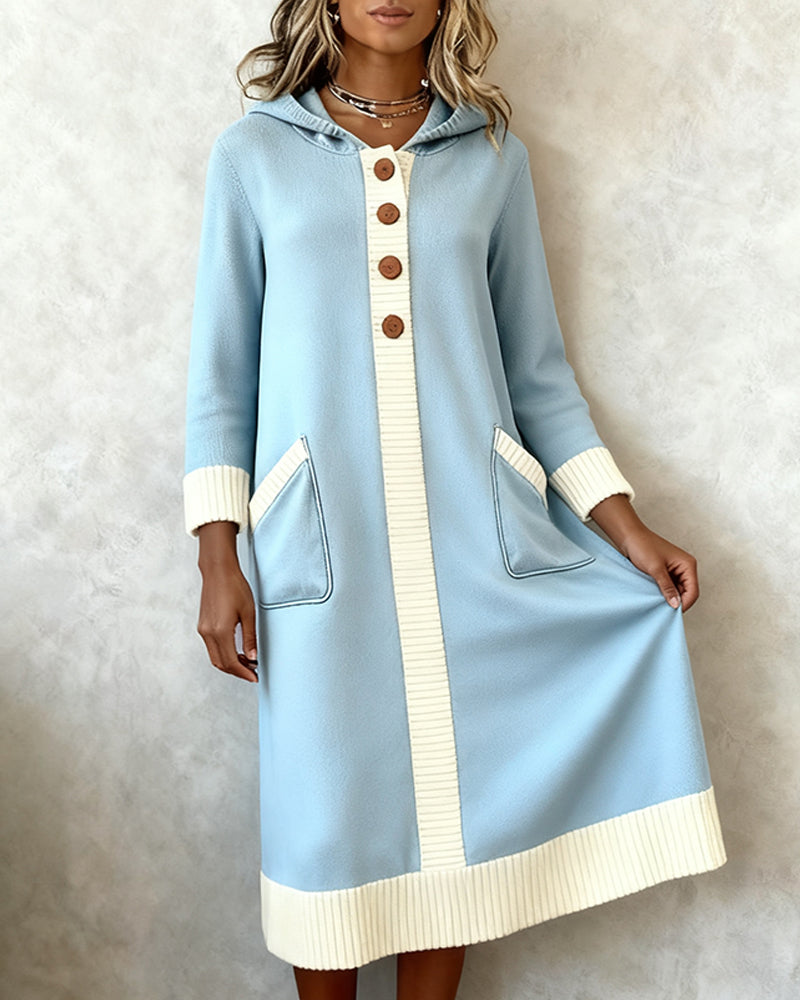 Robe Tendance À Capuche Et Couleurs Contrastées