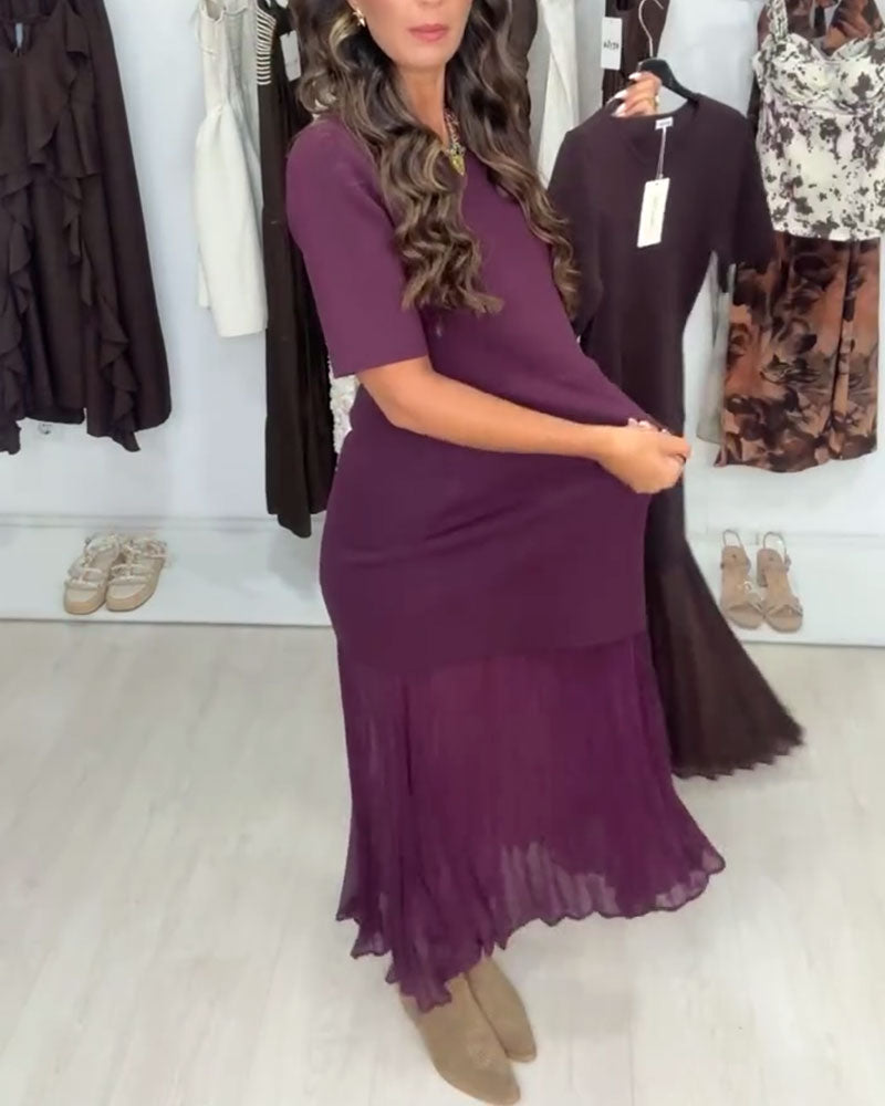 Robe Avec Décolleté en V, Allure Moderne Et Design En Blocs De Couleur