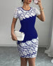 Robe Petites Manches Volantes Col Rond Imprimé Géométrique
