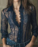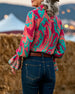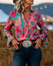 Haut Imprimé Losange Géométrique Manches Longues Col V