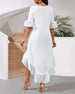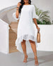 SPÉCIFICATIONS Style: Décontracté Matériel: Mélange de coton Type de la robe: Robe jambe droite Longueur de la robe: Longueur du genou Forme du col: Col rond Type du dessin: Couleur pure Type de la manche: Manches à volants Longueur de la manche: Manches demies Détails: Volants,Irrégulière Type d'ajustement: Habituel Saison: Printemps,Été Occa...