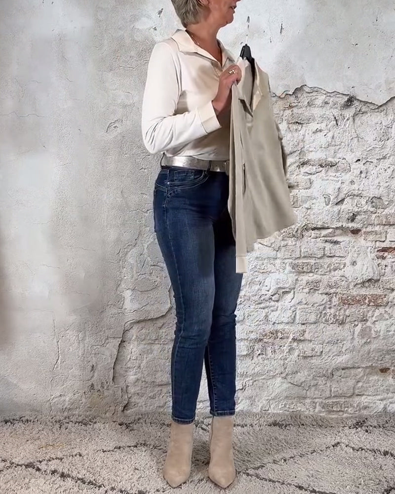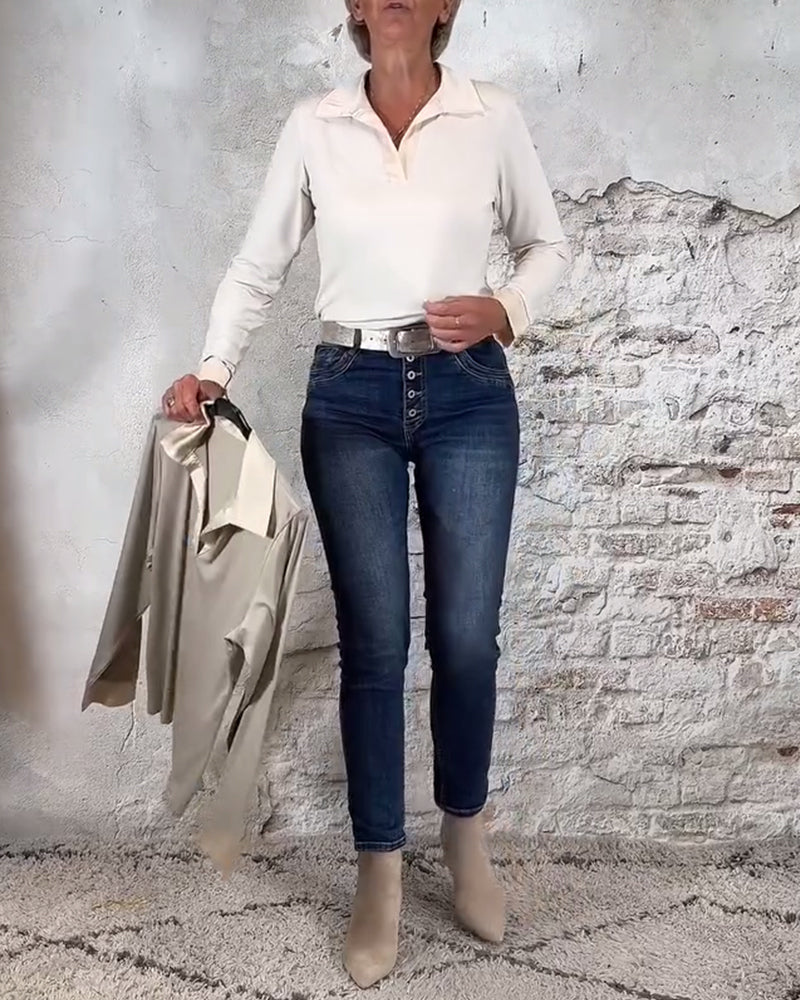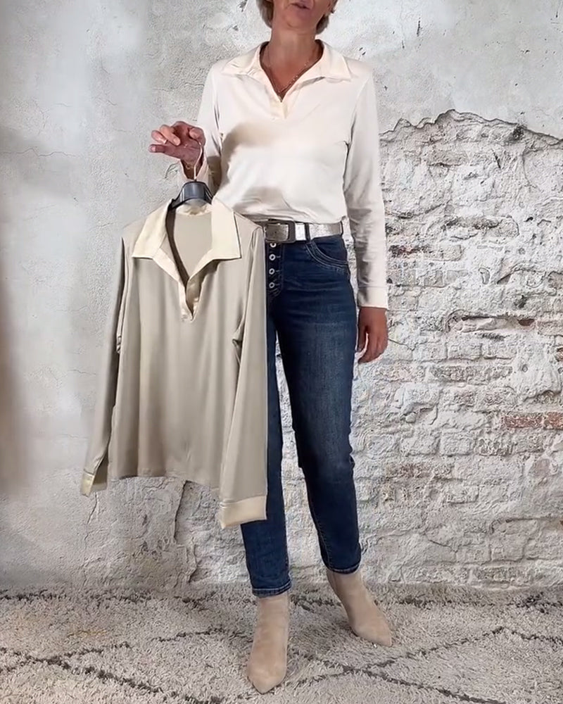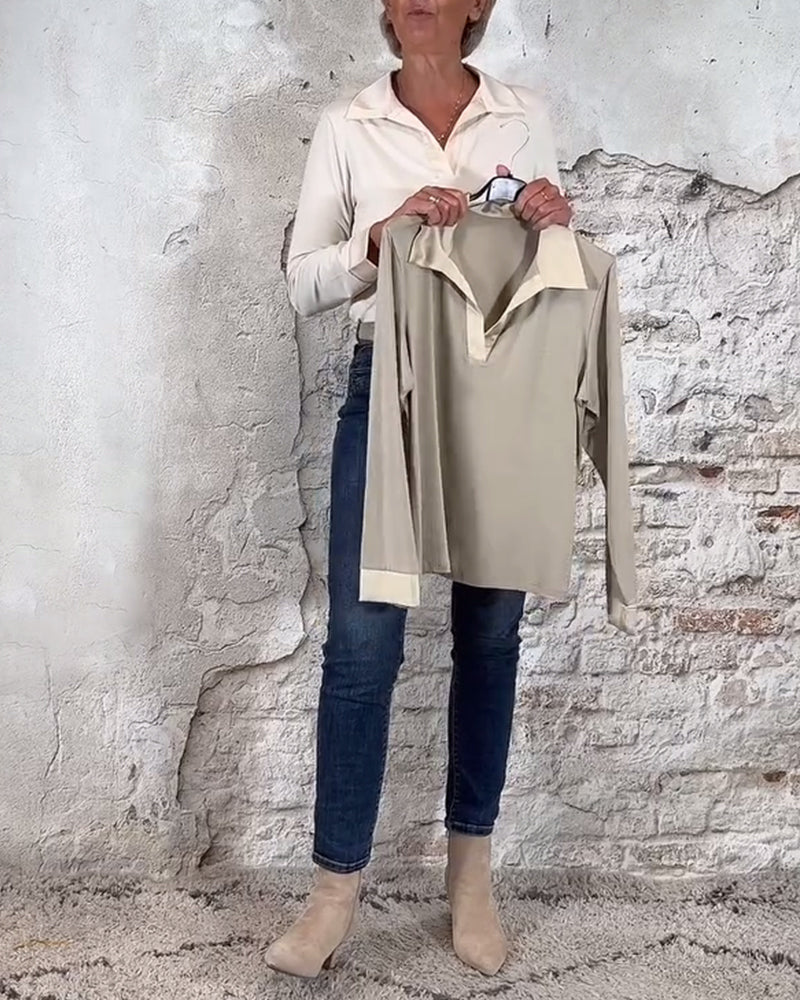 Haut Avec Col Revers, Design En Blocs De Couleur Et Allure Moderne