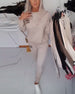 Ensemble Femme Top À Manches Longues Col Tailleur Et Pantalon