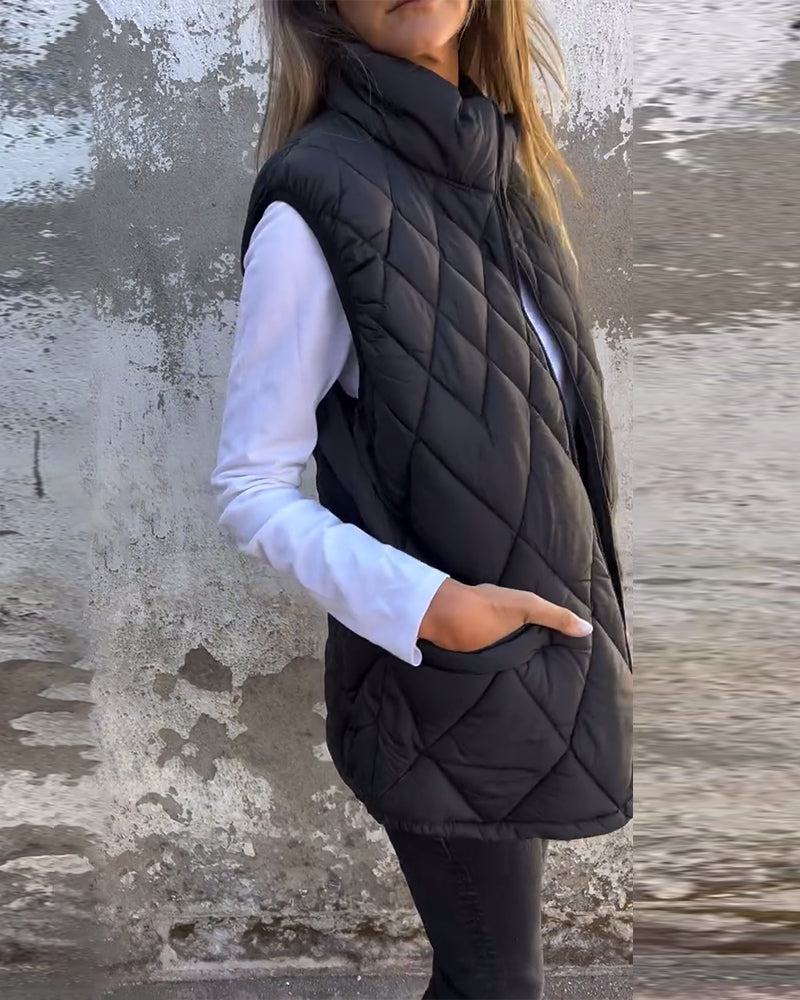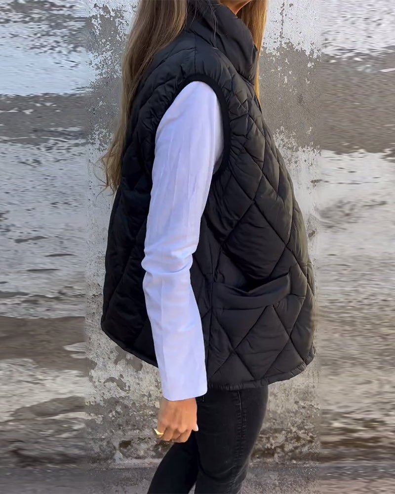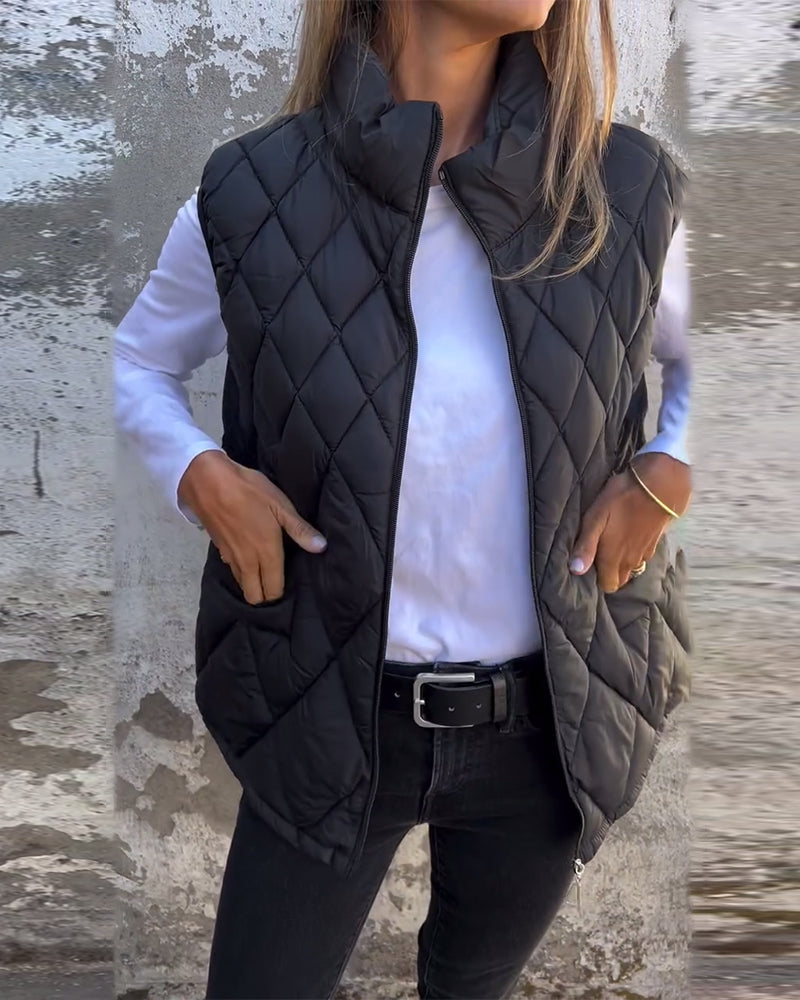 NOUV Icon1 Vestes Matelassées Col Montant Gilet À Surpiqûres Losange