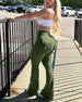 Pantalon Élégant Haute Taille Brillant Large Jambe