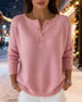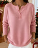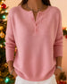 Pull décontracté de couleur unie avec bouton à revers et volants