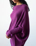 Pull tendance à manches chauve-souris et col rond de couleur unie