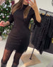 SPÉCIFICATIONS Style: Chic Matériel: Mélange de coton,Gaze,Paillettes Type de la robe: Robe moulante Longueur de la robe: Au-dessus du genou Forme du col: Col rond Type du dessin: Couleur pure Type de la manche: Manches régulières Longueur de la manche: Manches 3/4 Détails: Transparente,Forage à chaud Type d'ajustement: Habituel Saison: Automn...