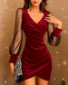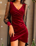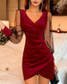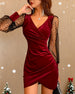 SPÉCIFICATIONS Style: Décontracté Matériel: Gaze,Velours Type de la robe: Robe moulante Longueur de la robe: Longueur du genou Forme du col: Col en V Type du dessin: Couleur pure Type de la manche: Manches régulières Longueur de la manche: Manches longues Détails: Couture de matériau Type d'ajustement: Habituel Saison: Automne,Hiver Occasion: ...