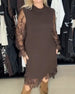 Robe Dentelle Patchwork Élégante Manches Longues