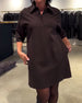 SPÉCIFICATIONS Style: Décontracté Matériel: Mélange de coton Type de la robe: Chemisier Longueur de la robe: Au-dessus du genou Forme du col: Col de chemise Type du dessin: Couleur pure Type de la manche: Manches régulières Longueur de la manche: Manches demies Détails: Poche,Boutons Type d'ajustement: Habituel Saison: Automne,Hiver Occasion: ...