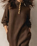 SPÉCIFICATIONS Catégorie: Robes pull Style: Décontracté Matériel: Acrylique, Élasthanne, Fibre polyester Forme du col: Col rond Type du dessin: Couleur pure Type de la manche: Manches d'épaule tombées Type de la robe: Robe jambe droite Longueur de la robe: Longueur du genou Longueur de la manche: Manches longues Détails: Poche Type d'ajusteme...