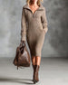 SPÉCIFICATIONS Catégorie: Robes pull Style: Décontracté Matériel: Acrylique,Fibre polyester Forme du col: Col en V Type du dessin: Couleur pure Type de la manche: Manches d'épaule tombées Longueur de la manche: Manches longues Détails: Poche,Fermeture éclair Type d'ajustement: Habituel Occasion: Quotidien Saison: Printemps,Automne,Hiver Conten...