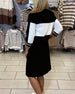 Robe Manches Longues Couleur Contrastée Élégante