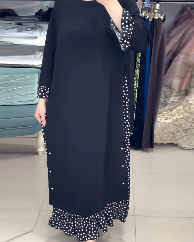 Robe Tendance Imprimée À Col Rond Et Manches Longues