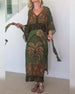 Robe longue femme col V imprimé feuilles