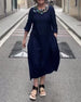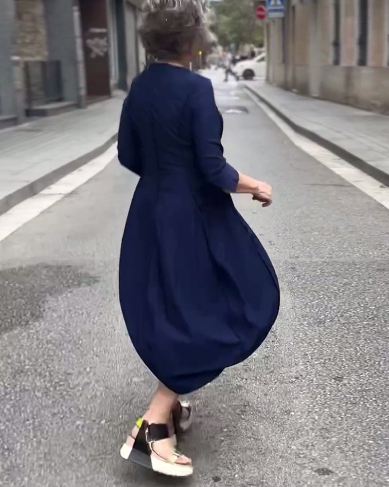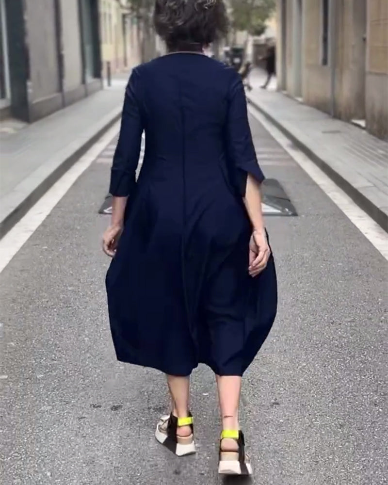 Robe Demi-Zip À Revers Manches Trois-Quarts