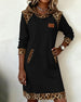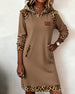 Robe élégante à imprimé léopard avec poche zippée et patchwork