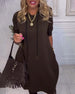 Robe Demi-Zip À Revers Manches Trois-Quarts