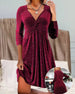 Robe Demi-Zip À Revers Manches Trois-Quarts