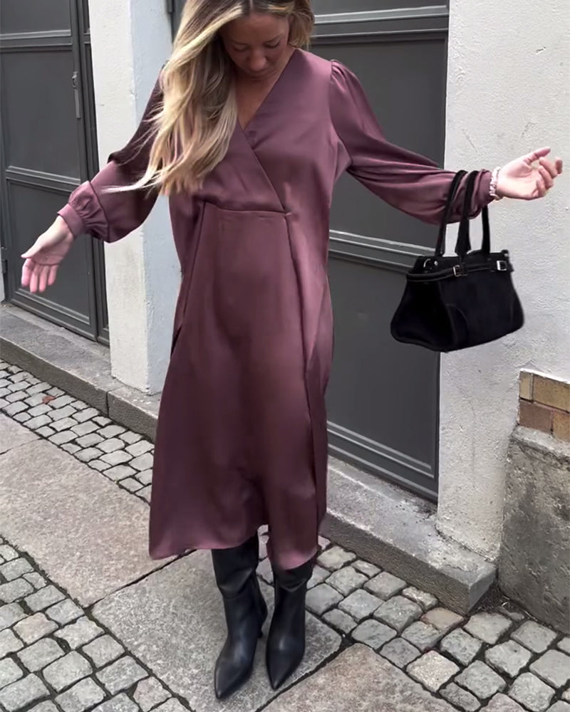 Robe Col En V Couture Manches Longues