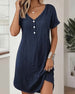 SPÉCIFICATIONS Style: Décontracté Matériel: Mélange de coton Type de la robe: Robe jambe droite Longueur de la robe: Au-dessus du genou Forme du col: Col rond Type du dessin: Couleur pure Type de la manche: Manches régulières Longueur de la manche: Manches courtes Détails: Boutons Type d'ajustement: Habituel Saison: Printemps,Été Occasion: Quo...