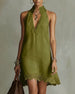 Robe Col V Dentelle Garniture Courte