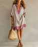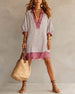 Robe Col En V Brodé Vacances Style