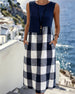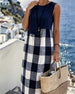 Robe Dos Nu Patchwork Plaid Sans Manches